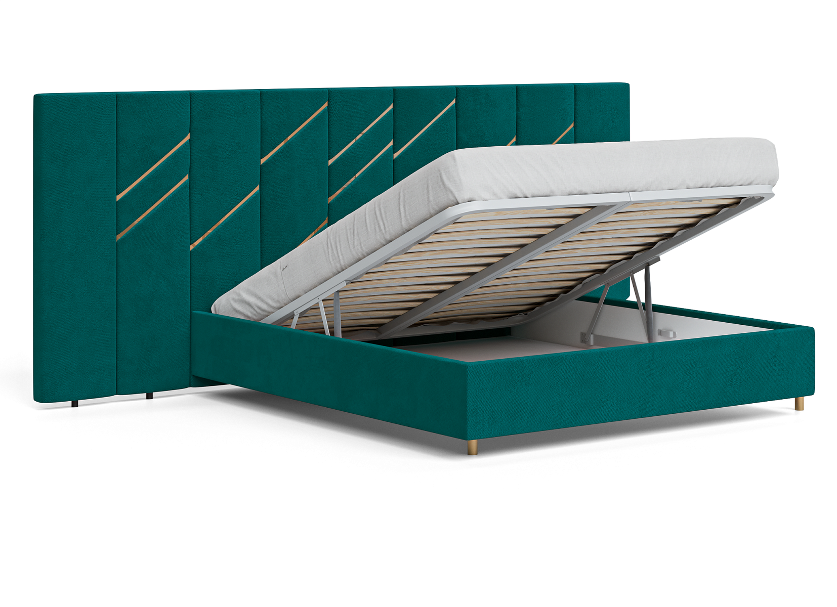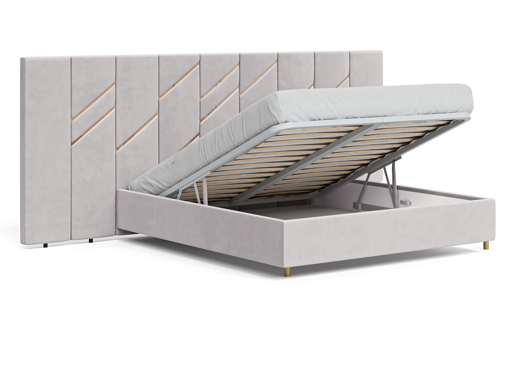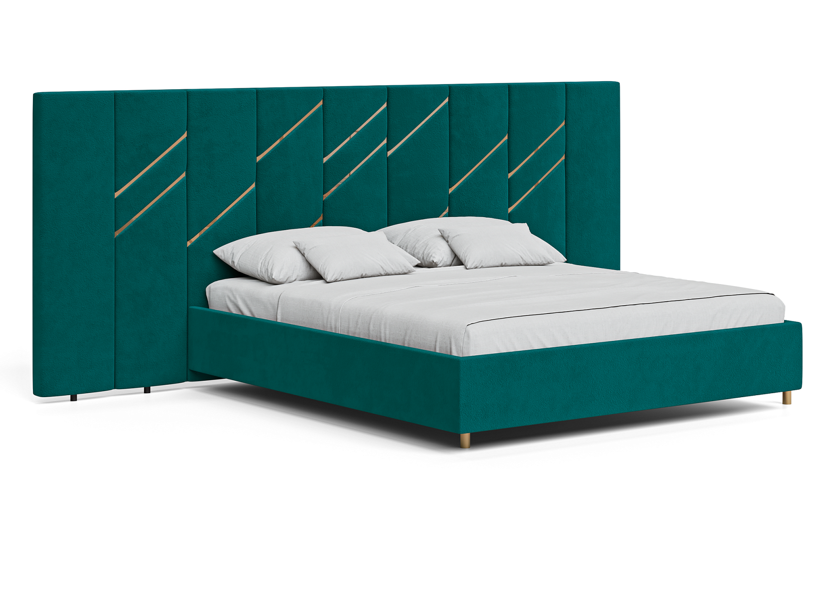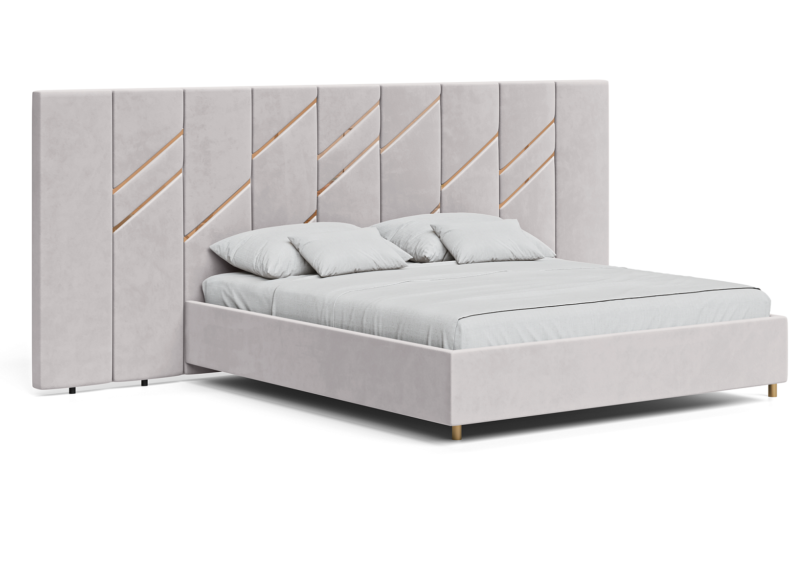 Погрузитесь в изысканность и роскошь с кроватью, вдохновленной стилем «Алькантара». Её изголовье, дополненное металлическими молдингами и вертикальными линиями, создает уникальную атмосферу в вашей спальне. Широкое изголовье кровати придаёт ей особый характер, расширяя пространство и добавляя уникальности интерьеру. Ножки кровати, сочетающиеся с молдингом, подчеркивают её стиль и гармонично дополняют дизайн, что придает кровати утонченный вид и особый шарм, делая спальню привлекательной и стильной.