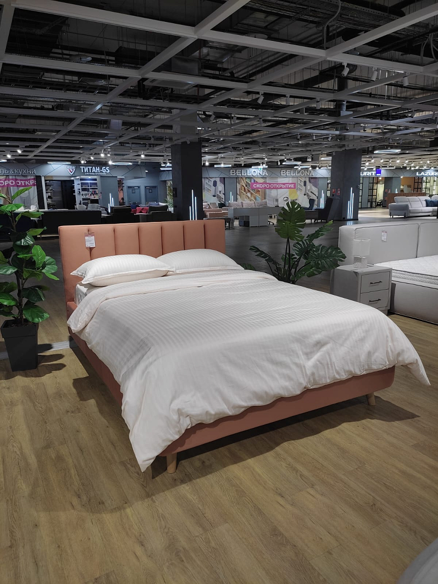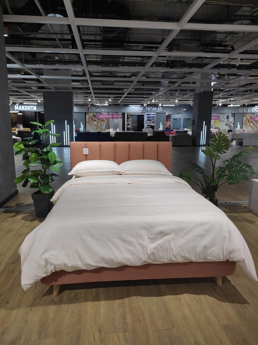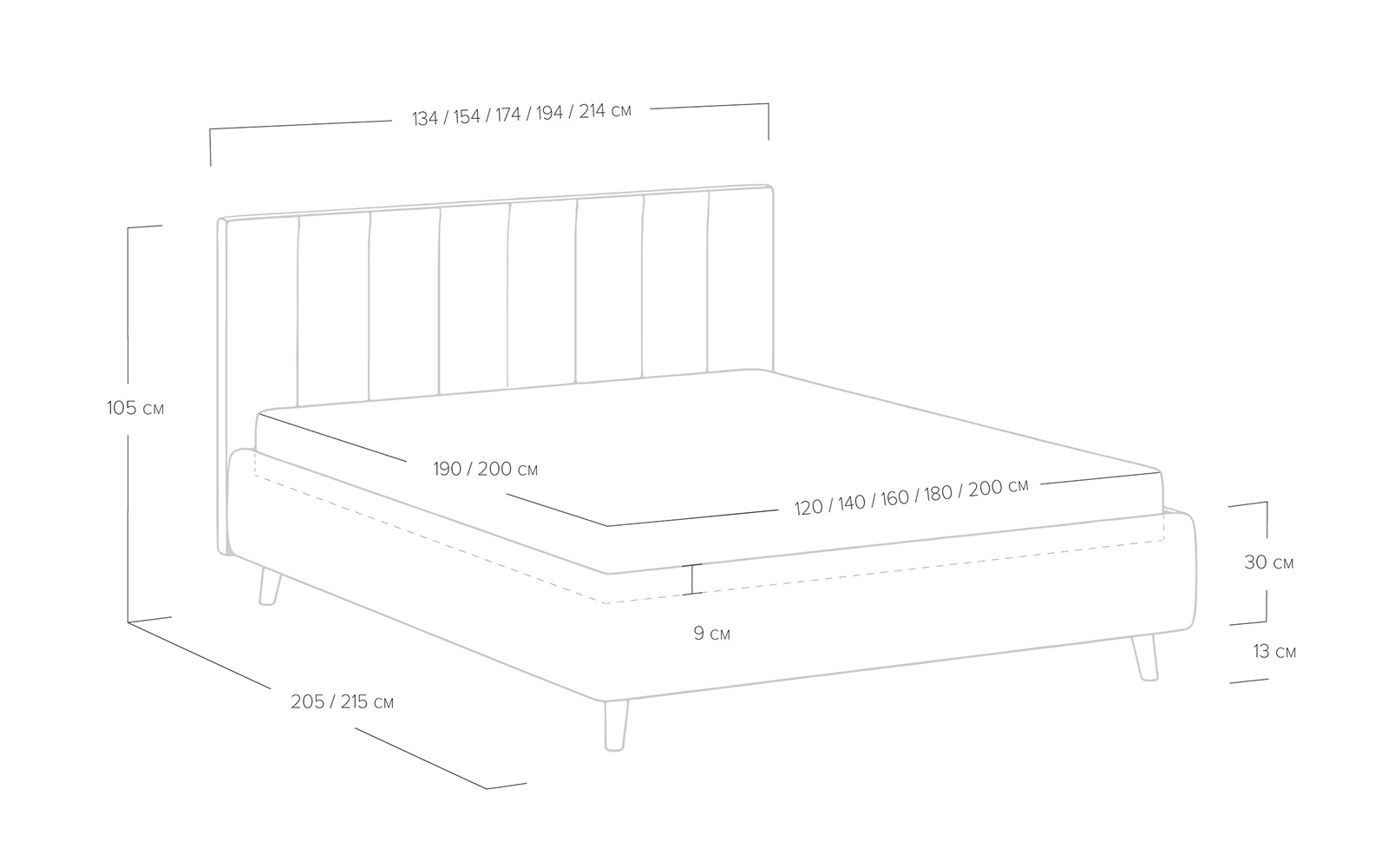 Кровать «Alma» подойдет для современных интерьеров спален, а благодаря деревянным ножкам впишется в стиль ретро, скандинавский или минимализм. В комплект входит металлическое основание с деревянными ламелями. Кровать может быть укомплектована подъёмным механизмом с бельевым ящиком.
