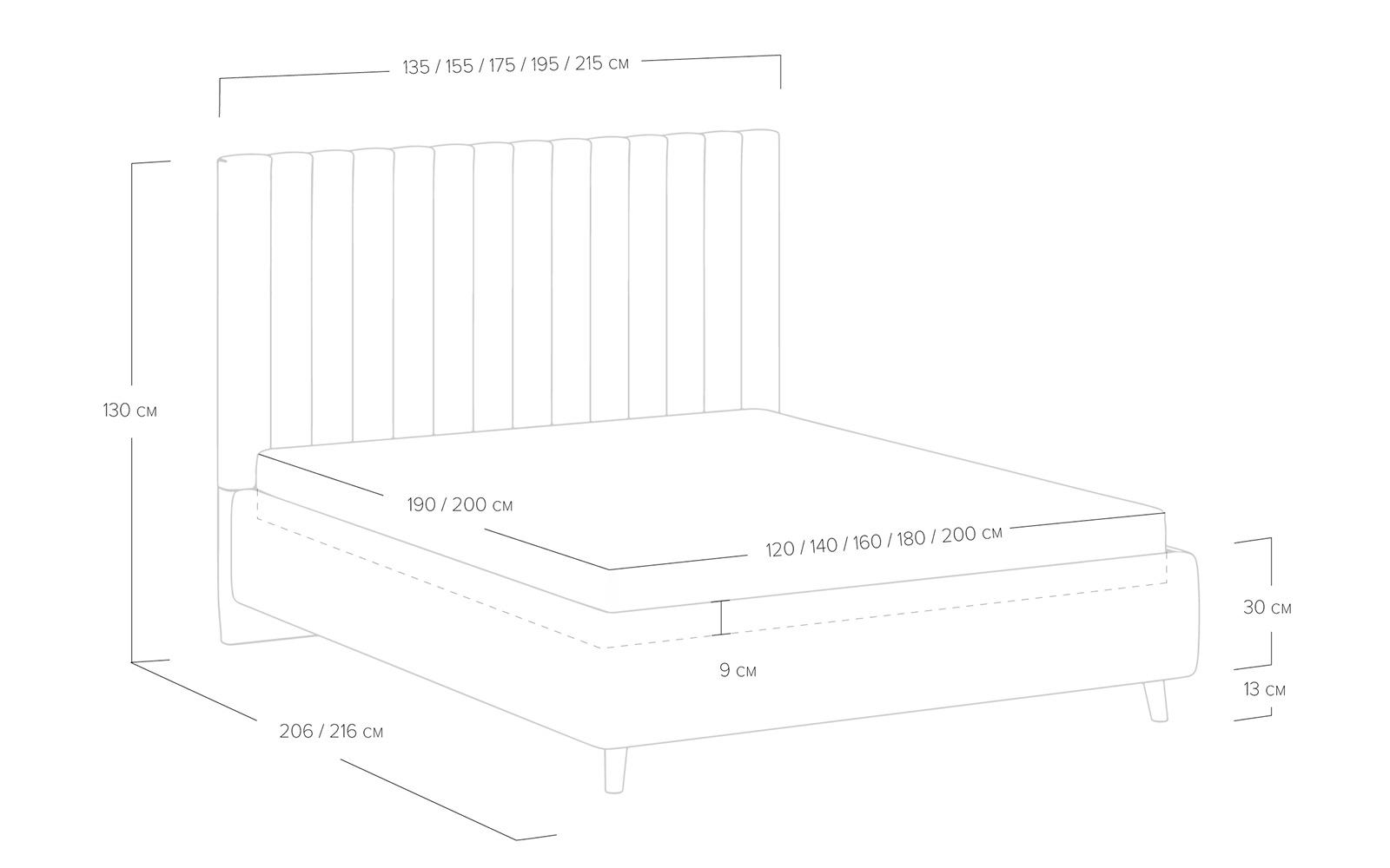 Высота изголовья: 130 см