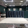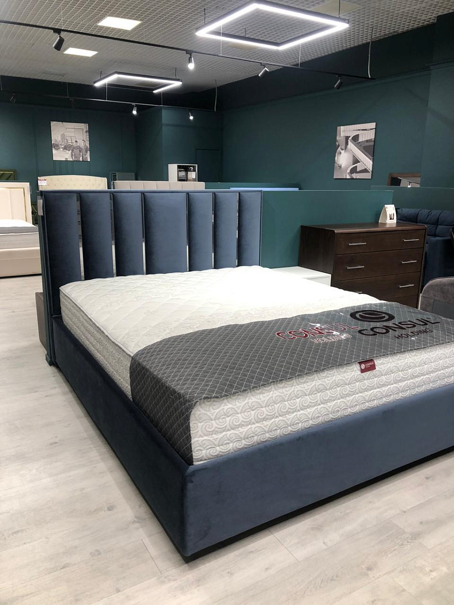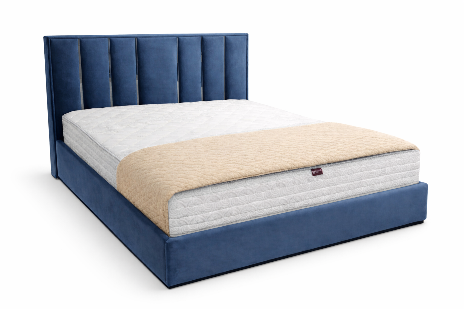 В этой мягкой кровати безупречно всё — от строгого сдержанного дизайна до лаконичных золотистых вставок на прямоугольном изголовье. Тонкие полосы ненавязчиво уходят вниз. Тонкие хромированные ножки повторяют оттенок и изысканность декора, превращая обычную кровать с мягким изголовьем в настоящий шедевр дизайнерского искусства.