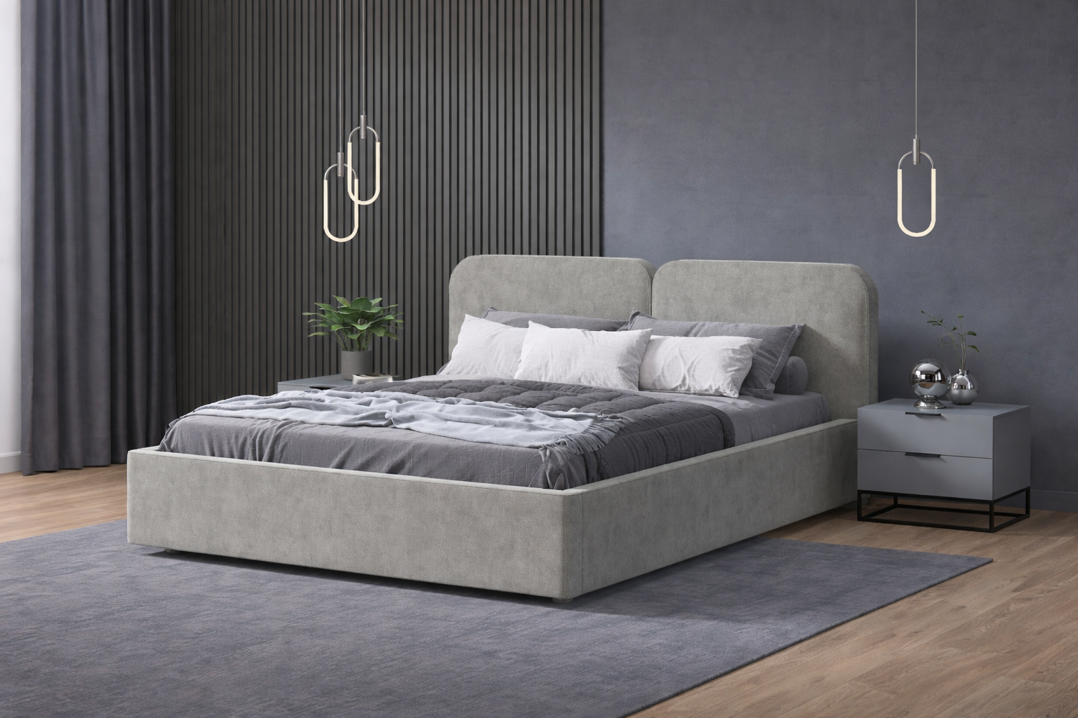 Кровать с мягким изголовьем прекрасно впишется в интерьер современной спальной комнаты. Дизайн со сглаженными формами и декоративной строчкой, образующей неброский кант, всегда востребован, так как подходит для многих стилевых решений.