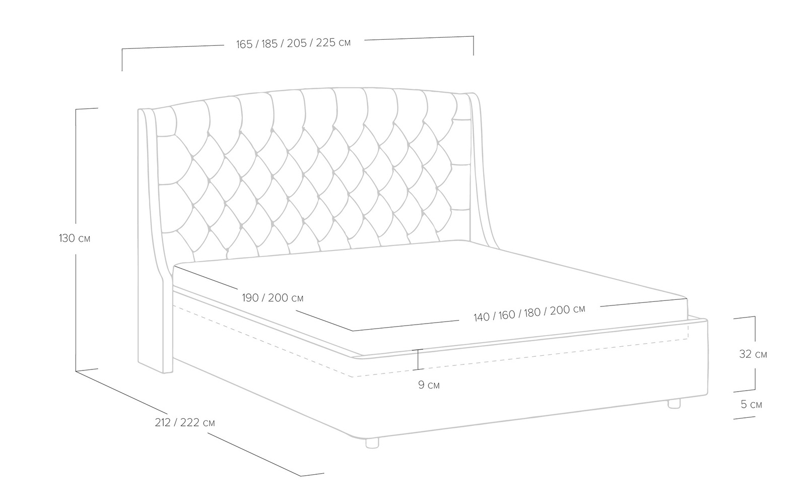 Внешние габариты: Ш 185 × Дл 222 × В 130 см