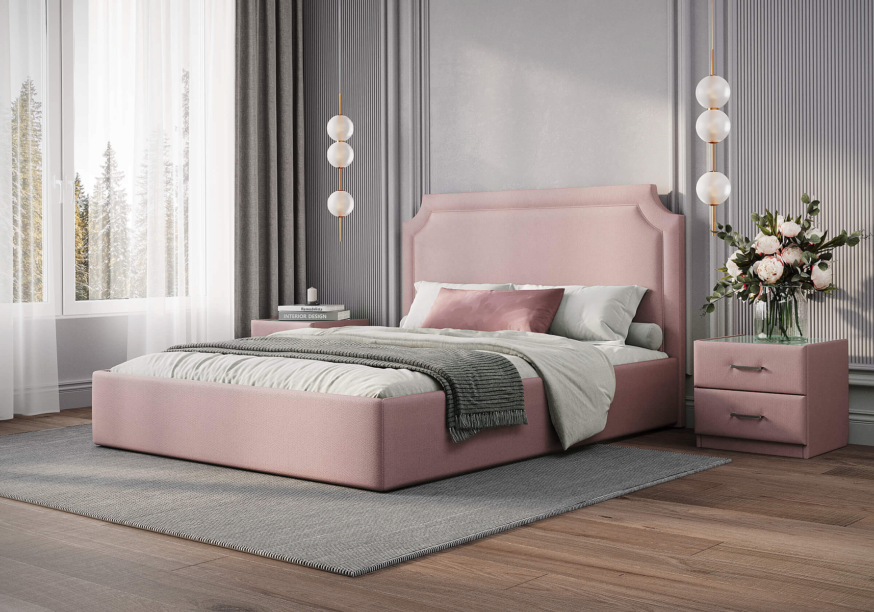 Кровать с высоким, элегантным изголовьем и декоративной рамкой. Такое решение придает кровати визуальную выразительность и делает ее центральным элементом спальни. Стоит обратить внимание на декоративный кант, который добавляет изысканности и завершенности облику. Кровать Eliot имеет минимальные опоры, царги опущены до пола. Также можно встроить зону хранения — это идеальное решение для экономии пространства в спальне.