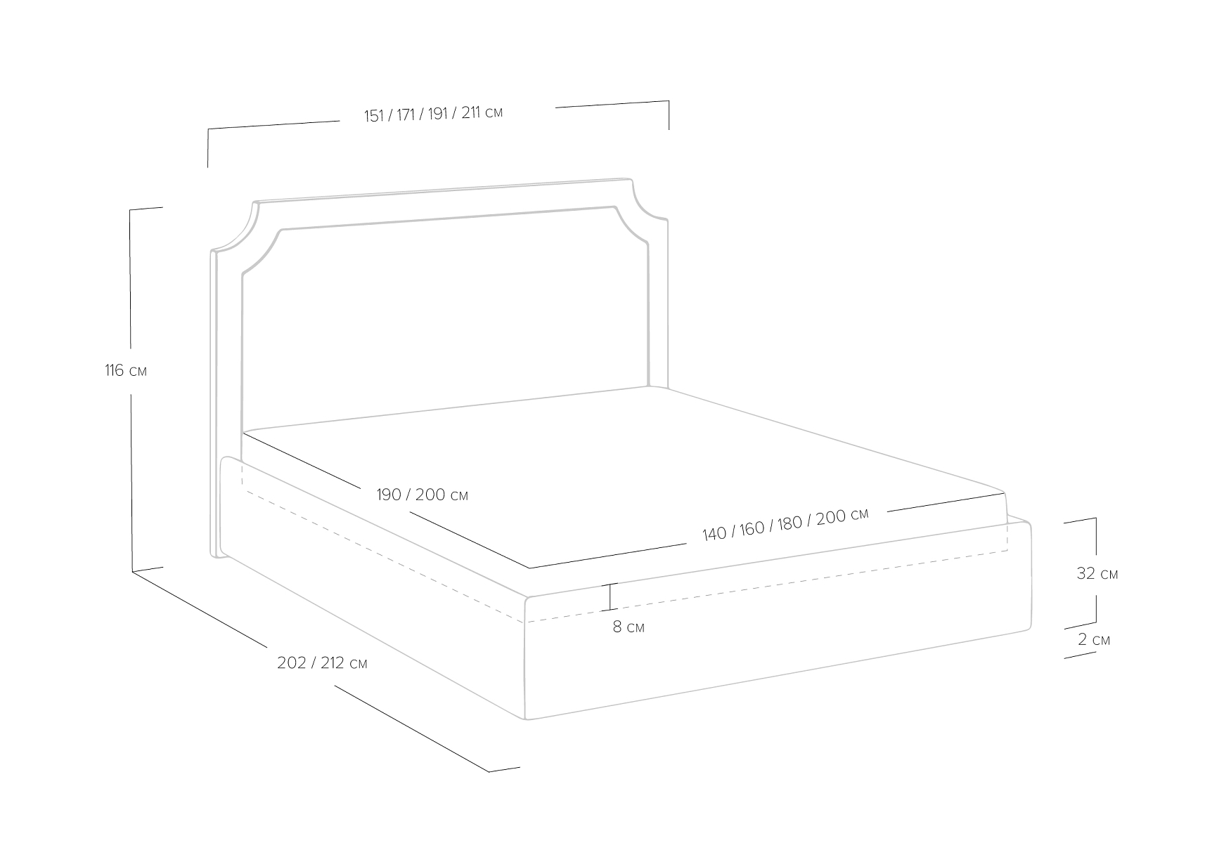 Углубление под матрас: 8 см