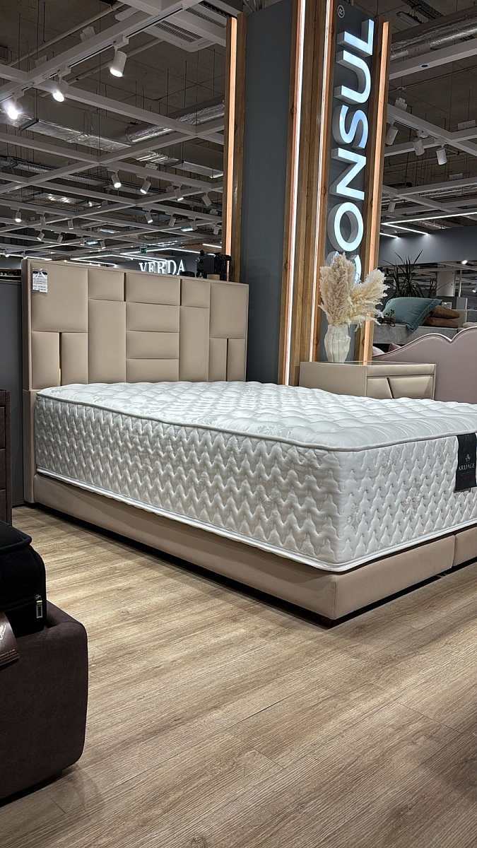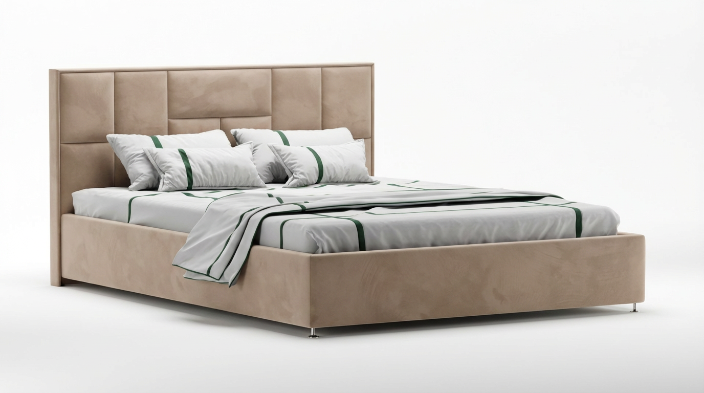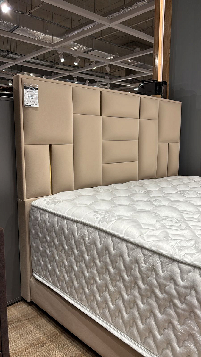 Этот тот случай, когда одна мягкая кровать может добавить лоска всему интерьеру спальни, настолько она выглядит роскошно и изысканно. Высокое мягкое изголовье кровати украшено геометрическими строчками и готово стать опорой своим владельцам в вечерние часы. Приятная на ощупь обивка долговечна и практична. Модель может выпускаться как с бельевым отсеком, так и без него. Также может регулироваться и ширина спального места в зависимости от потребностей покупателя.