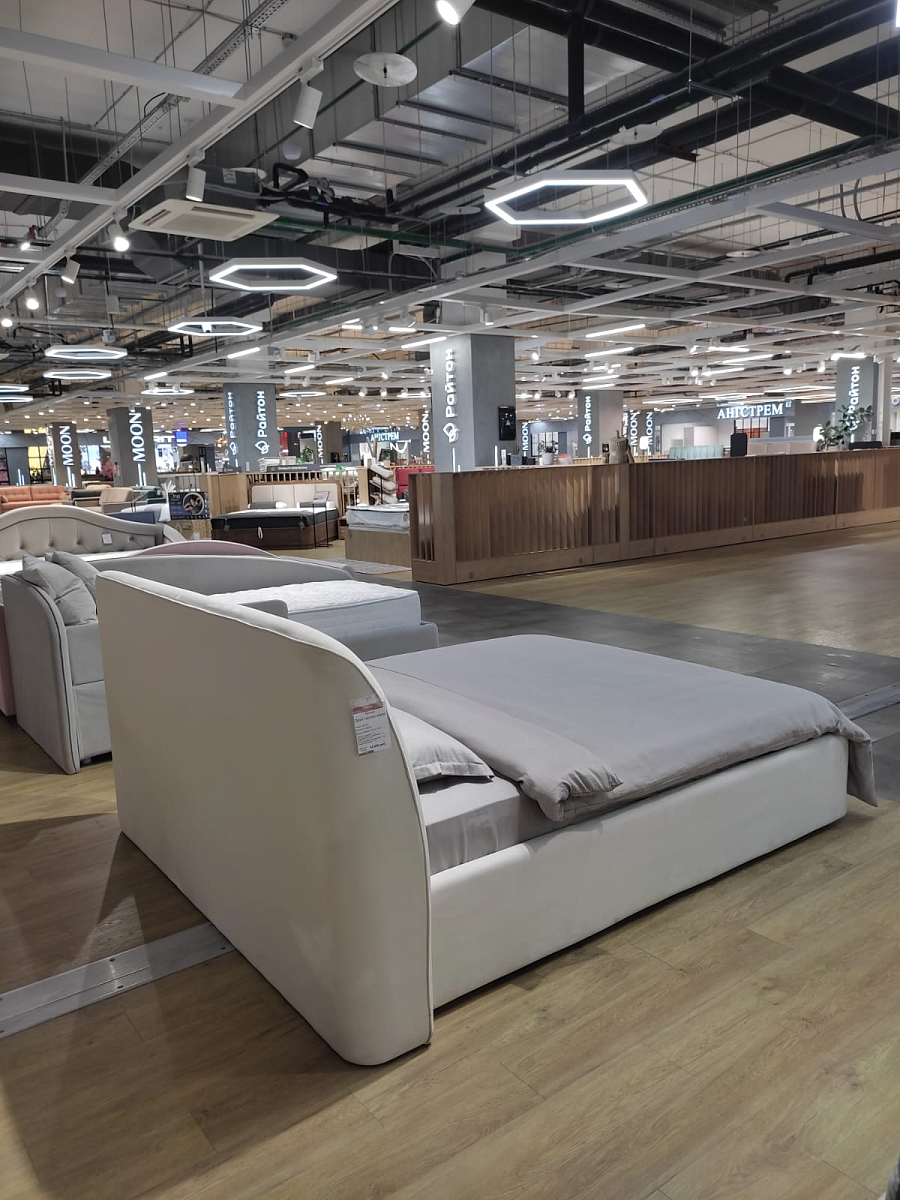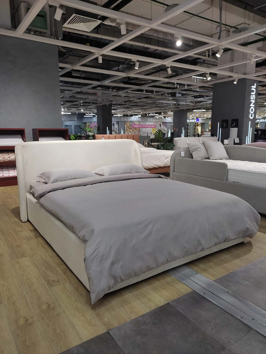 Кровать «Nicole» удачно подойдет для интерьеров в современном стиле, стиле минимализм и модерн. Дизайнерское закругленное изголовье, широкие царги и минимальный просвет от пола, делают спальное место особенно уютным. Задняя часть изголовья кровати выполнена в основной ткани, благодаря этому ее можно установить в центре комнаты. Кант на изголовье подчеркивает его выразительность.