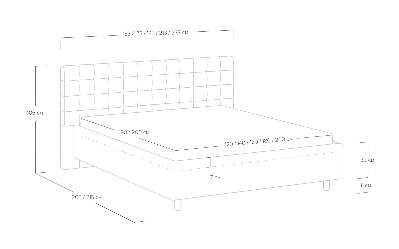 Внешние габариты: Ш 194 × Дл 215 × В 106 см