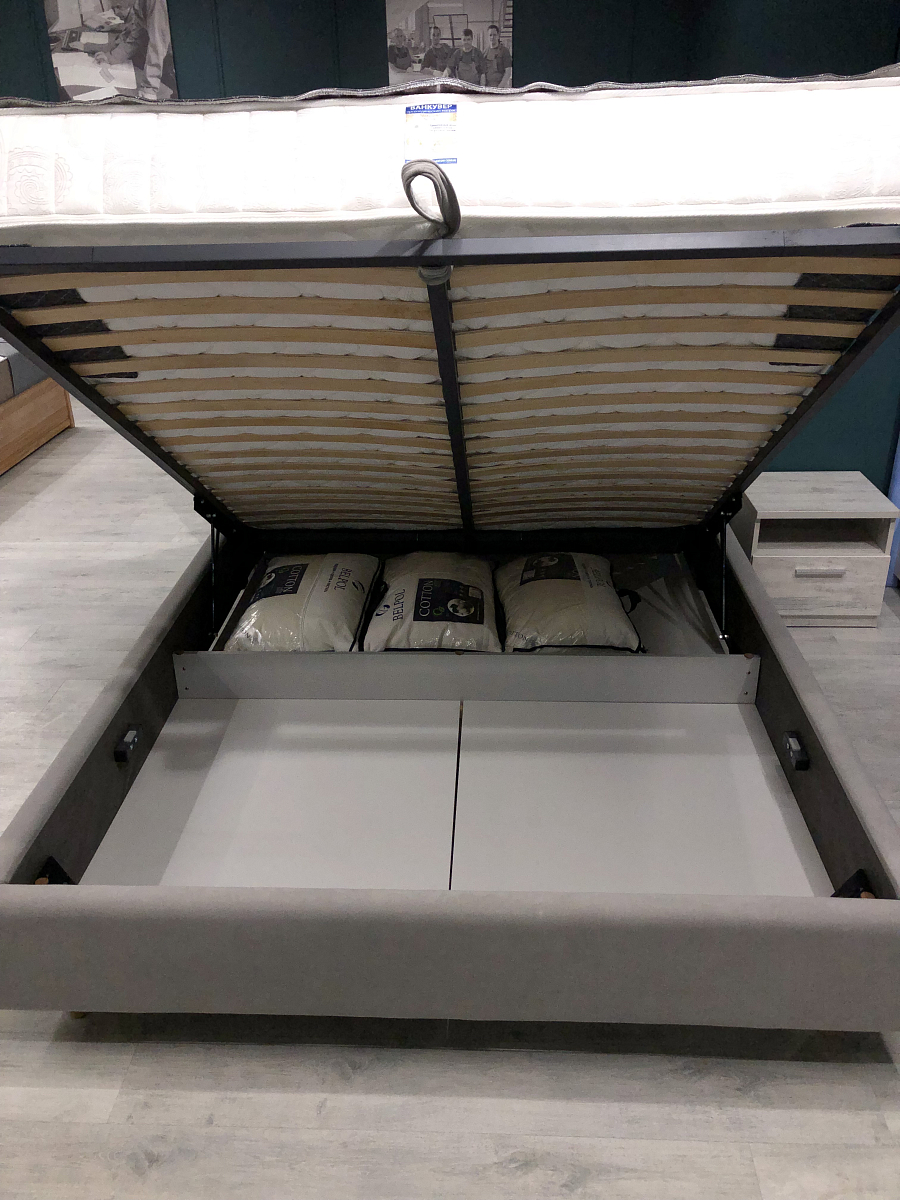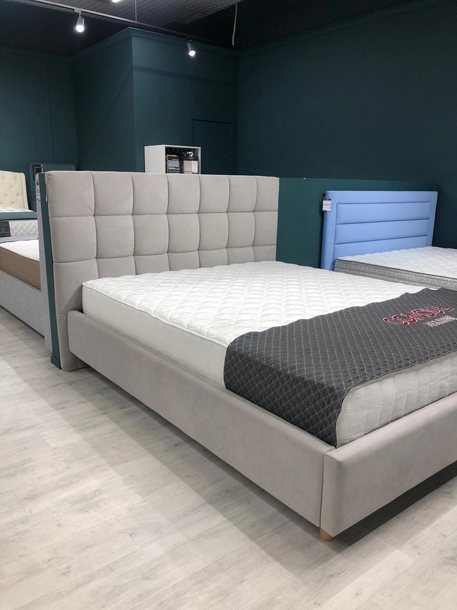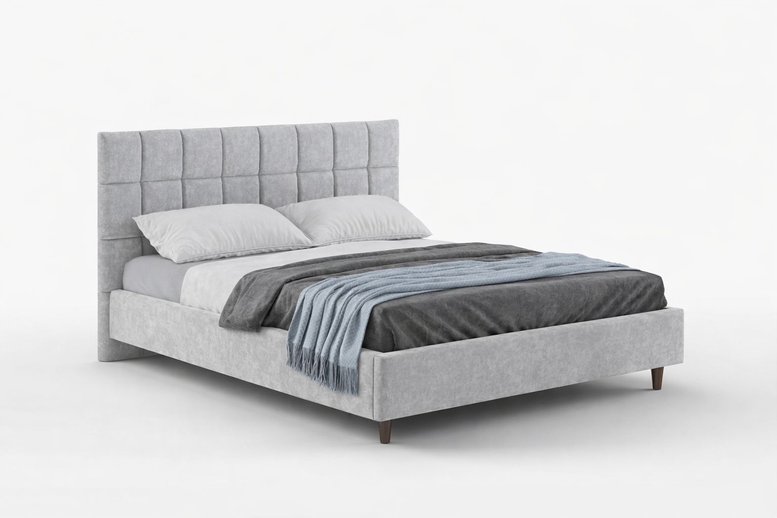 Эта кровать словно создана для тихих вечеров и долгих утр — мягкая обивка с благородной фактурой приглушает свет и добавляет интерьеру спокойствия. Чёткая геометрия изголовья и воздушные пропорции делают образ современным и лёгким, превращая спальню в пространство уюта и визуального баланса.