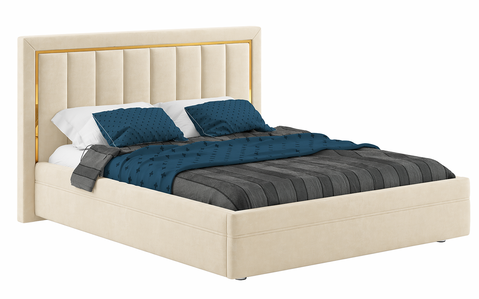 Кровать «Vanessa» — это современная мягкая модель с выразительным высоким изголовьем и декоративными металлическими акцентами. Вертикальная прострочка визуально вытягивает силуэт кровати, делает её более лёгкой и подчёркивает геометрию интерьера.
