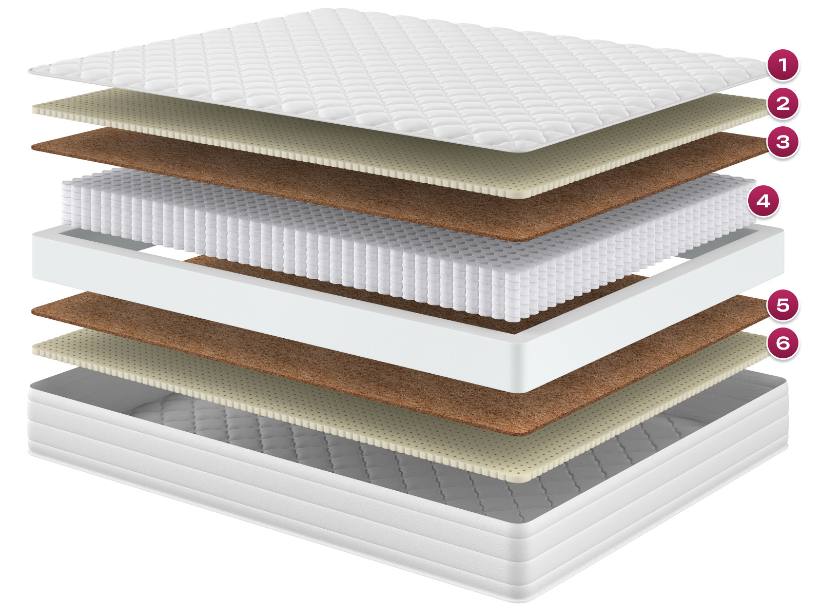 Экологически чистый и долговечный материал из межплодника ореха кокосовой пальмы. Она не вызывает аллергии и обладает благотворным биополем. В матрасах койра обеспечивает упругость и долговечность, а латексная пропитка устраняет ломкость и увеличивает срок службы, создавая прочную и долговечную плиту.