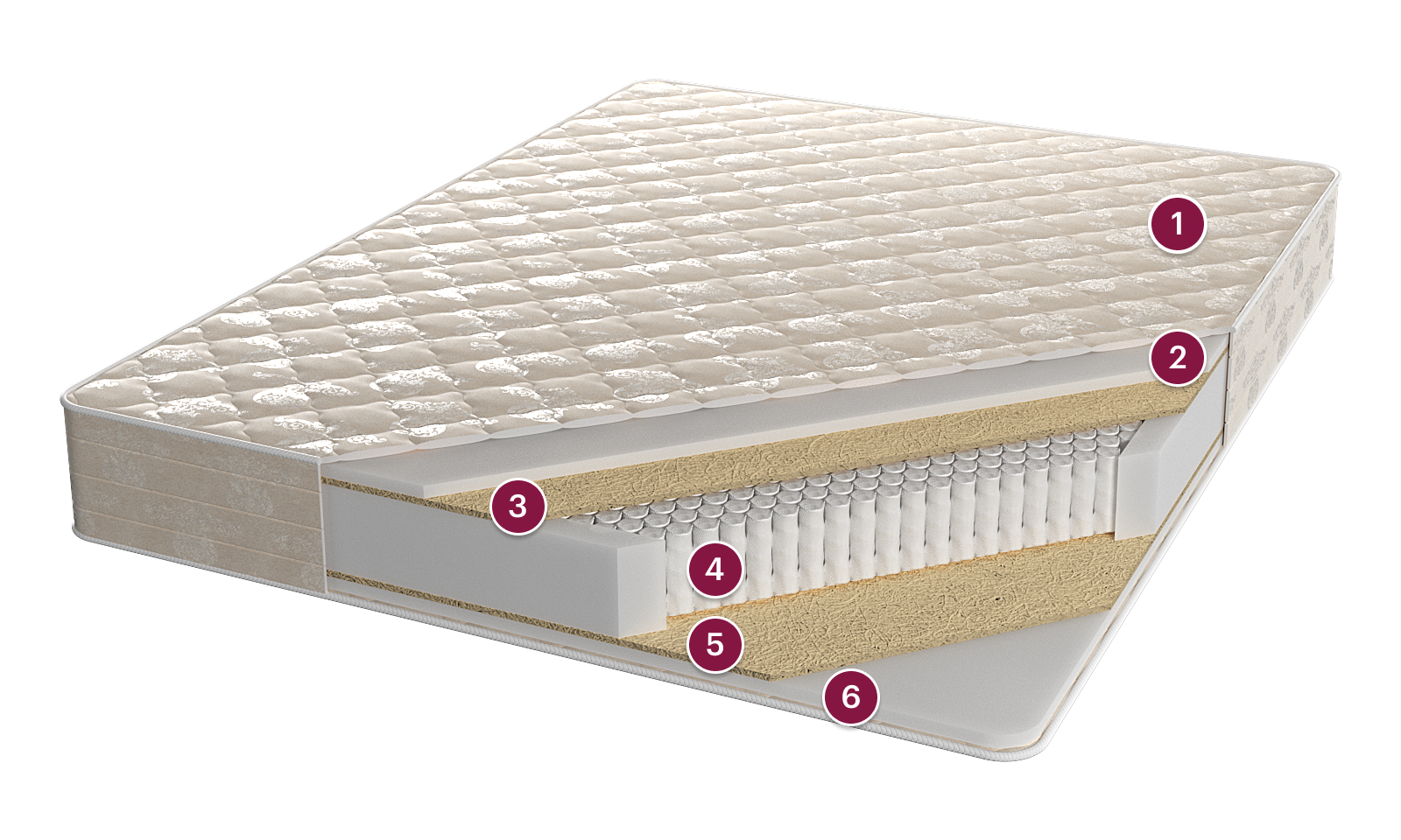Упругий и прочный настилочный материал, который использовался еще до изобретения матрасов. Данный настилочный материал свободно организованных волокон, зафиксированных только снизу на джутовом полотне. Благодаря этому пальмовое волокно отлично вентилирует спальное место, регулирует температурный режим. Поддерживает комфортный микроклимат во время сна.