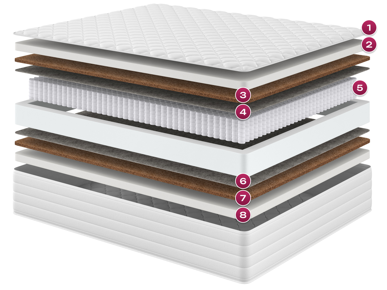 Экологически чистый материал для матрасов состоит из смеси натуральных хлопковых и шерстяных волокон, обеспечивая высокую прочность и долговечность. Он надежно защищает пружинный блок и наполнители, быстро восстанавливает форму и практически не истирается. Полимерные волокна термовойлока не токсичны и не вызывают аллергии.