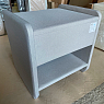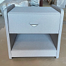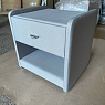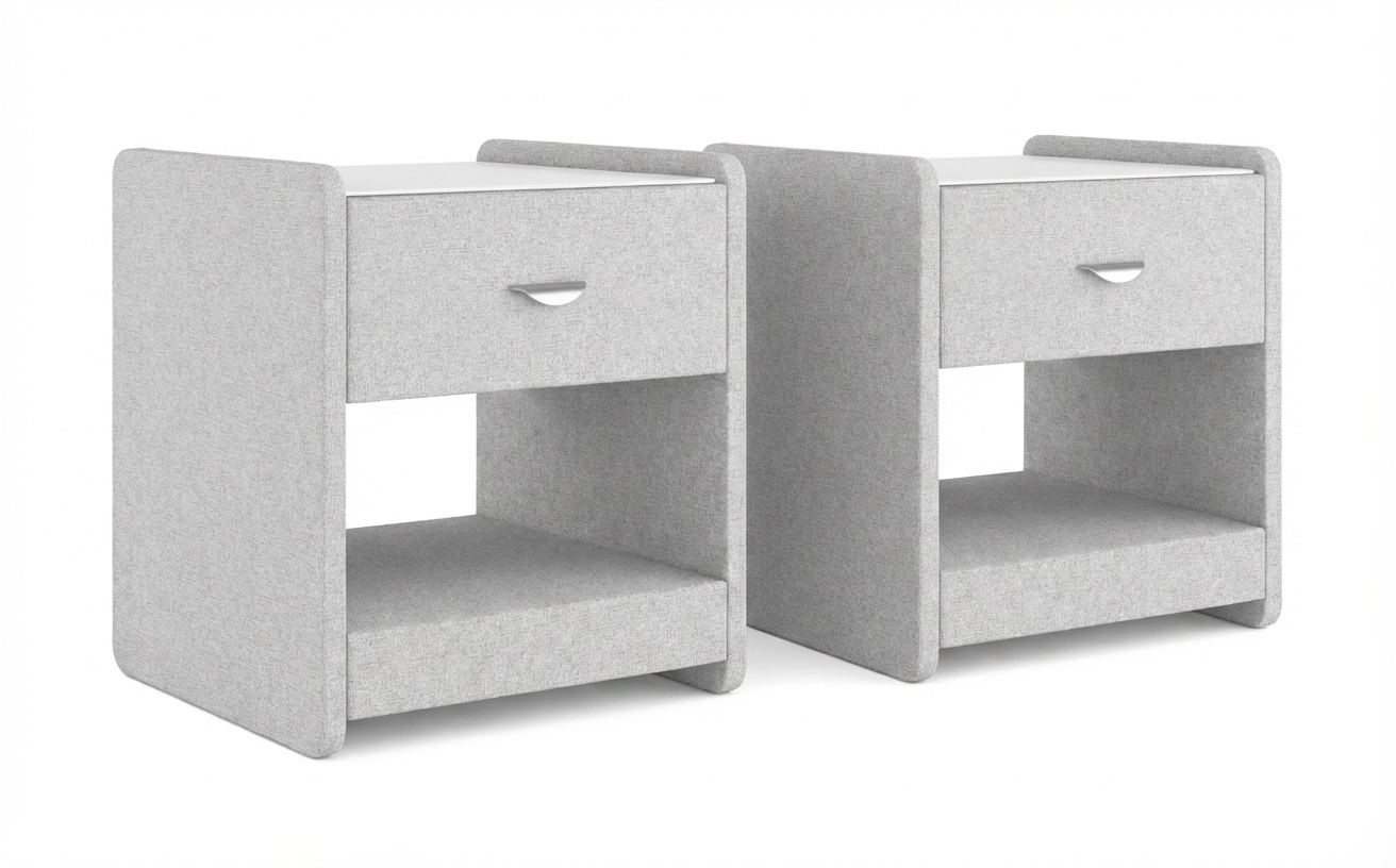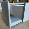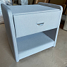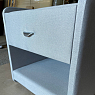Необычная тумба с открытой секцией и выдвижным ящиком станет удачным дополнением к интерьеру любой спальни. Размеры 51x44x52 см, корпус выполнен из ДСП, обивка из ткани на ваш выбор. Ящик открывается с помощью лаконичной металлической ручки.
